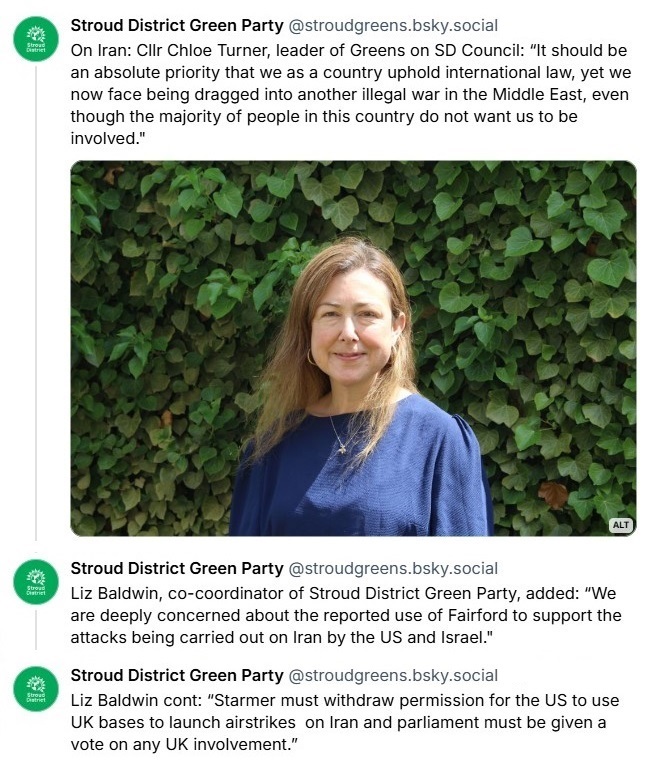 Our local Green Party has responded to the USA-Israel attack on Iran on most media platforms.