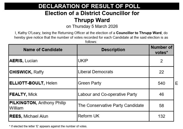 OK, so we knew that Stroud's Thrupp ward tended to Green, and a lot of effort went into the campaign, but nonetheless ...