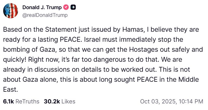 Governance by social media ... and press conference, TV soundbite, photo opportunity. Check out Trump's blast of last night. An explicit existential threat - "if you don't do as I say" - to the "People of Gaza", direct from the leader of a distant, overwhelmingly more powerful country, delivered via his "truth" platform.