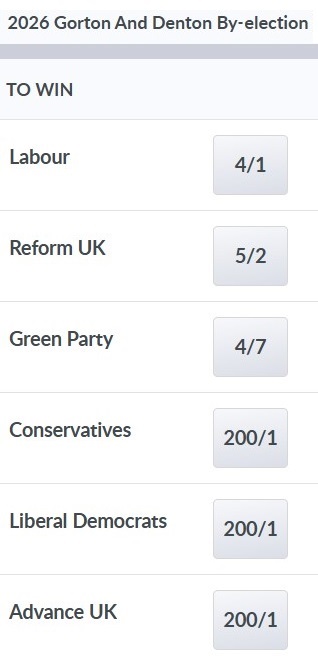 That's right - the odds-on Greens lead, followed by Reform, then Labour, whose majority was 13,413 in July 2024 and now look likely to lose the seat. Labour continue to say that a vote for the Green Party is a vote for Reform. On the contrary, in Gorton a vote for Labour is a vote for Reform. Jeremy Corbyn has - no surprise - told would-be-Your-Party-ists (no candidate on offer) to back the Greens, not Labour. An indication of the seriousness with which the right take the Green challenge can be seen at the Daily Mail. Here's their little eye-catcher: