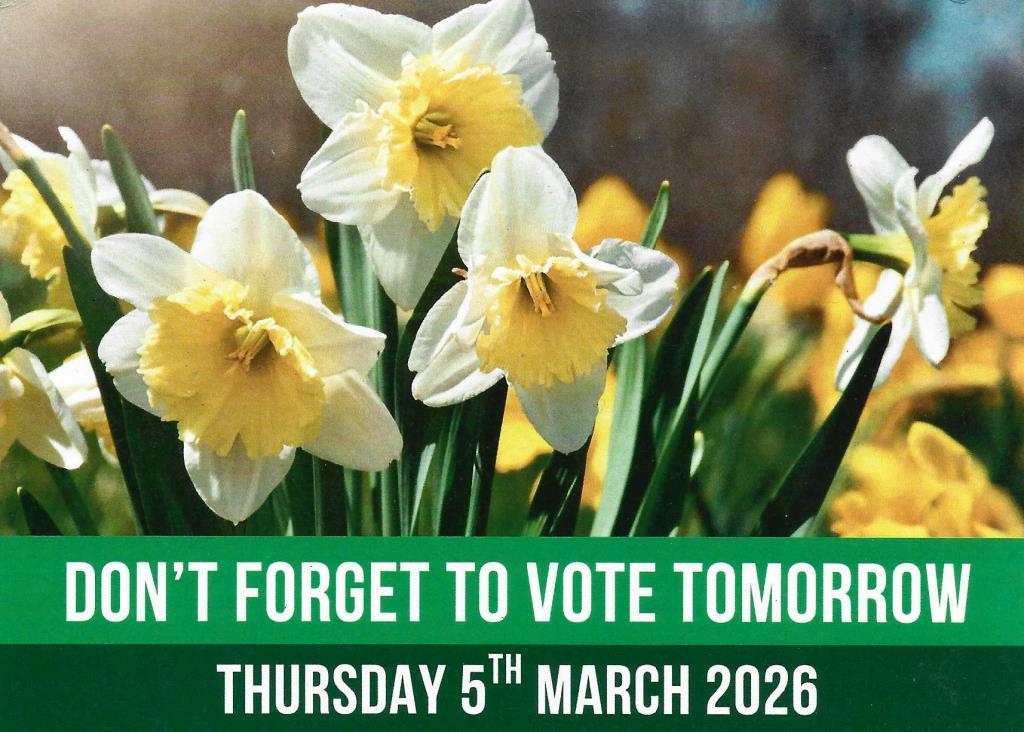 Who are all these people of my age voting for Reform? No, I actually don't want to know. And I don't want to meet them. An attitude which won't do, of course. If we don't find out why they want to vote this way, and then change their minds, we are all doomed. We need to wake up and commit to countering what threatens to be an unspeakable outcome. So, in contrast, a little light - Green - reminder going out locally, with spring in our steps, for a by-election: